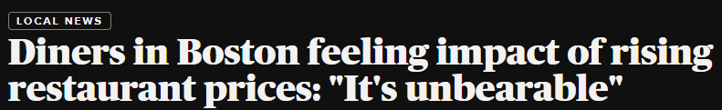 餐馆价格飙升,波士顿人直呼在城里“吃不起”!